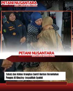 www.PetaniNusantara.com.ǁJawaTimur,5 Oktober 2025-Anaknya meninggal saat ‘mondok’ dan sedang menunaikan ibadah Salat Asar membuat Ahmad Rofiq (49) berusaha tabah. Dia tabah dan ikhlas meratapi kepergian sang anak, Daul Milal (18) santri yang tewas dalam tragedi ambruknya gedung Ponpes Al Khoziny, Buduran, Sidoarjo pada Senin (29/9/2025) sore. Di ruang tunggu keluarga yang disediakan oleh RS Bhayangkara Surabaya,…