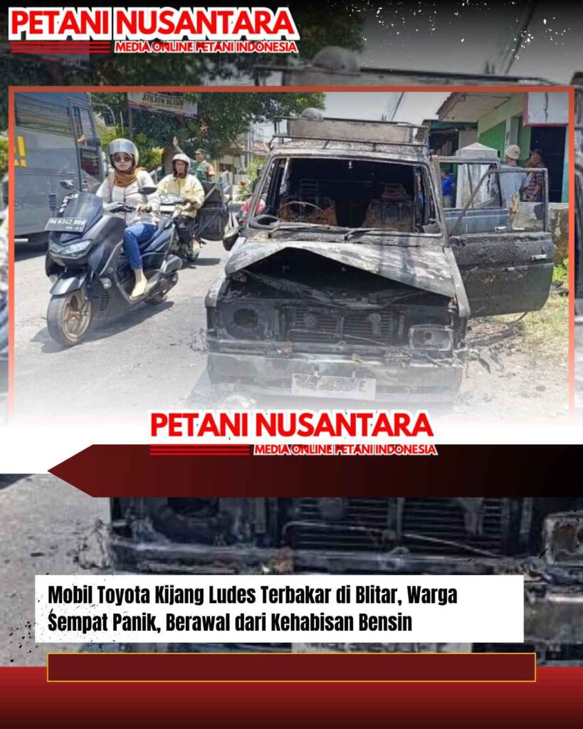 Ringkasan Berita: Lokasi & Waktu: Jl. Raya Kelurahan Satreyan, Kecamatan Kanigoro, Blitar, Selasa (14/10/2025). Kendaraan Terbakar: Mobil Toyota Kijang Nopol AG 1201 E. Penyebab Dugaan: Korsleting yang dipicu oleh infus bensin darurat (botol air mineral berisi bensin) yang lupa dilepas dari mesin. www.PetaniNusantara.com.ǁJawaTimur,14 Oktober 2025-Sebuah mobil Toyota Kijang Nopol AG 1201 E hangus terbakar di Jl Raya Kelurahan Satreyan,…