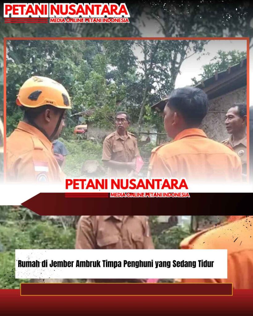 www.PetaniNusantara.com.ǁJawaTimur,27 Januari 2026-Nasib nahas menimpa Putri Ramadani (19) saat rumahnya ambruk di Desa Candijati, Kecamatan Arjasa, Jember, Selasa (27/1/2026) pukul 11.30 WIB. Kejadian tersebut berlangsung pukul 11.30 WIB, ketika perempuan umur 19 tahun ini sedang tertidur di dalam rumah non permanen di Desa Candijati Kecamatan Arjasa Jember. Kepala Badan Penanggulangan Bencana (BPBD) Jember, Edy Budi…