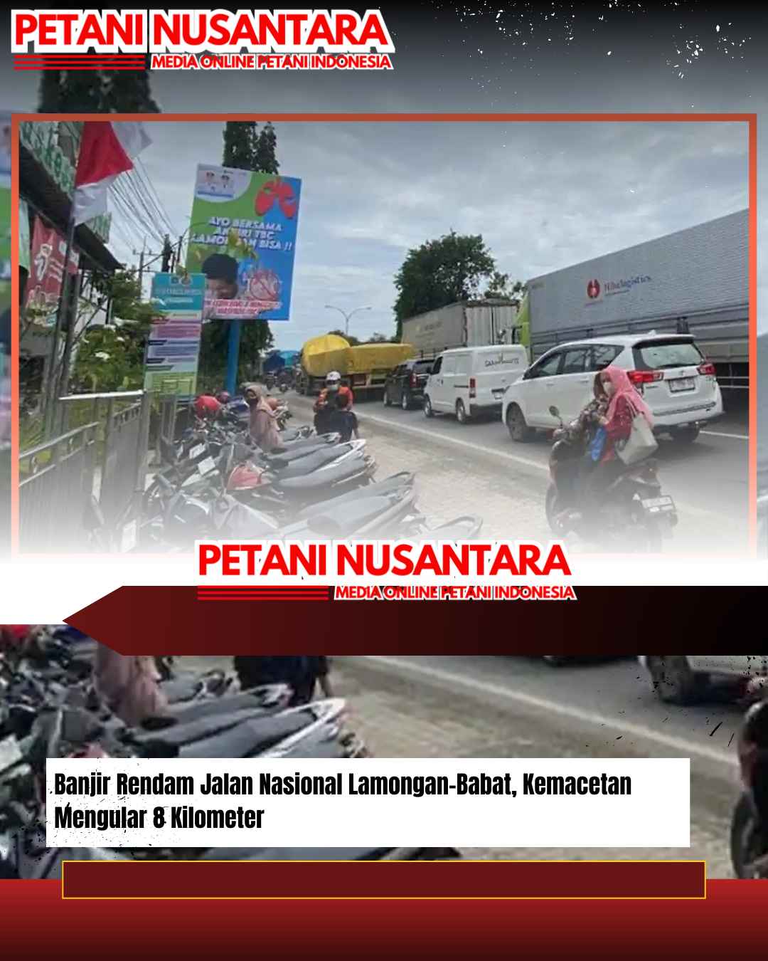 www.PetaniNusantara.com.ǁJawaTimur,22 Desember 2025-Banjir yang merendam Jalan Nasional Lamongan–Babat tepatnya di wilayah Plosowahyu, Kecamatan Lamongan, Kabupaten Lamongan, Jawa Timur mengakibatkan kemacetan parah.