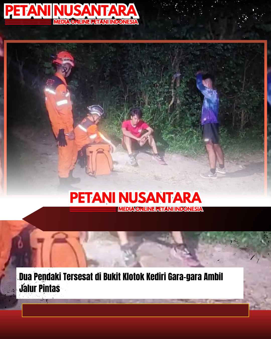 www.PetaniNusantara.com.ǁJawaTimur,30 Desember 2025-Niat mengambil jalan pintas, dua pendaki tersesat di kawasan Bukit Klotok, Kecamatan Mojoroto, Kota Kediri, Jawa Timur, Senin (29/12/2025) malam.