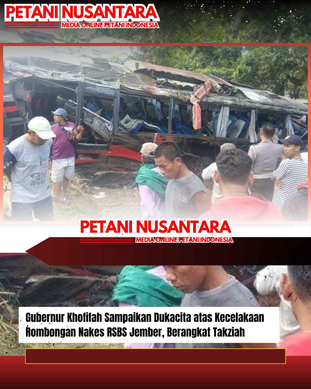 www.PetaniNusantara.com.ǁJawaTimur,15 September 2025-Gubernur Jawa Timur, Khofifah Indar Parawansa, menyampaikan dukacita mendalam atas musibah kecelakaan bus pariwisata yang terjadi di Jalan Raya Bromo, Desa Boto, Kecamatan Lumbang, Kabupaten Probolinggo, Jawa Timur.