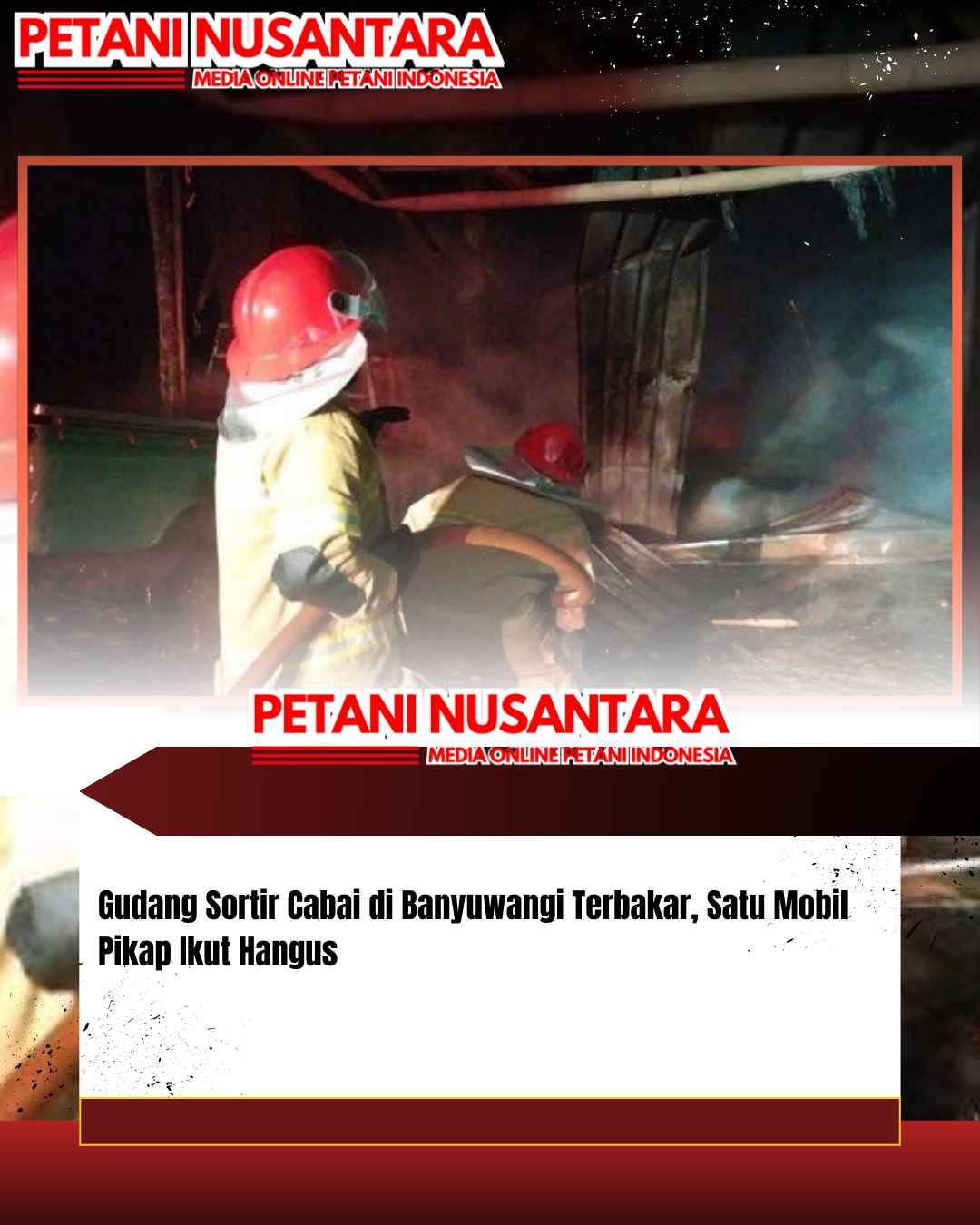 www.PetaniNusantara.com.ǁJawaTimur,5 September 2025-Gudang sortir cabai di Desa Kampunganyar, Kecamatan Glagah, Banyuwangi, Jawa Timur, terbakar Kamis malam (4/9/2025).