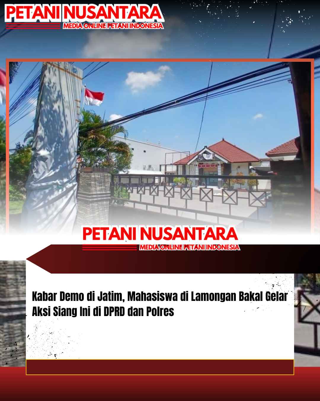 www.PetaniNusantara.com.ǁJawaTimur,1 September 2025- Minggu pertama hari kerja minggu ini di Lamongan bakal diwarnai aksi demo oleh sejumlah mahasiswa yang tergabung dalam satu pergerakan, Senin (1/9/2025).