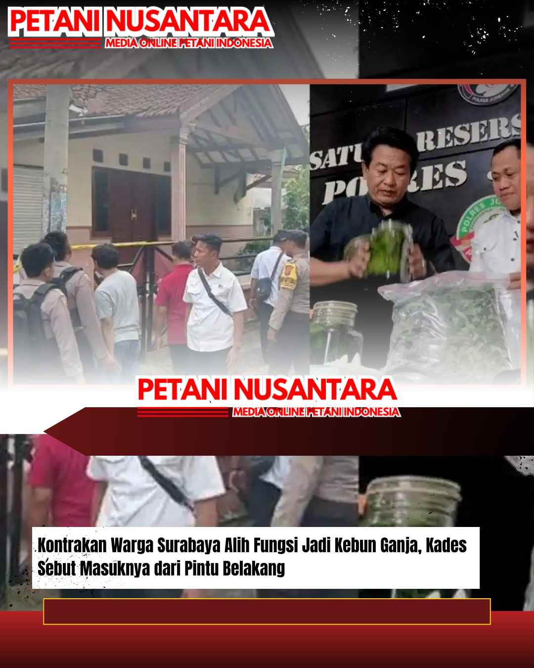 Sebelumnya diberitakan, Polres Jombang menggerebek sebuah rumah kontrakan yang difungsikan menjadi tempat penanaman ganja di Desa Mojongapit, Kecamatan Jombang, Kabupaten Jombang, Jawa Timur pada 15 Desember 2025.