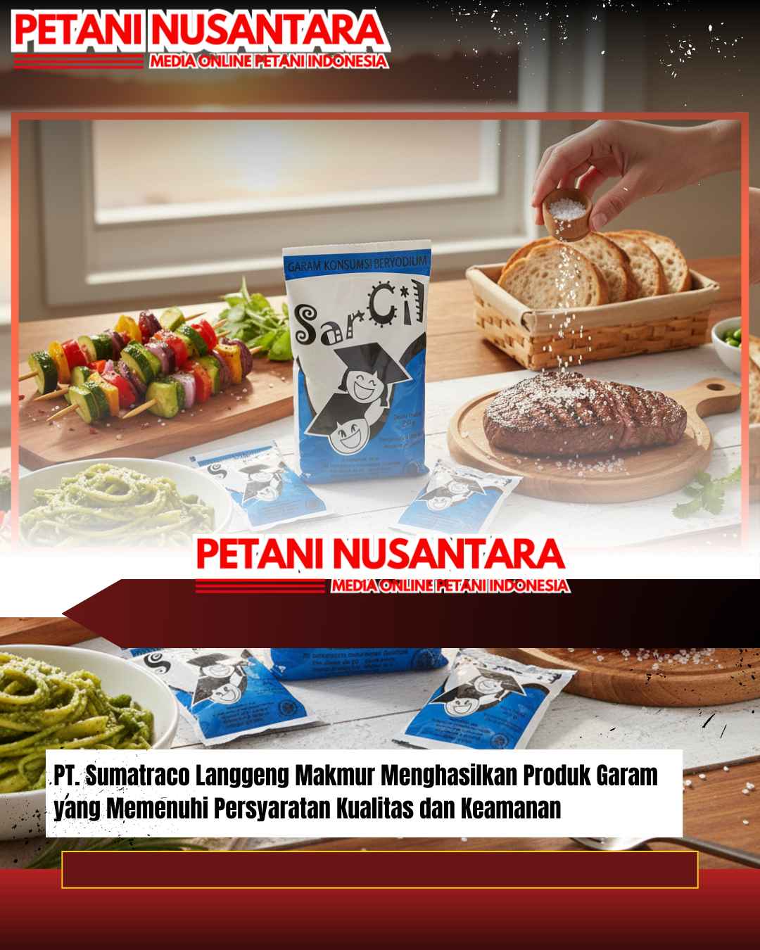 www.PetaniNusantara.com.ǁSurabaya,16 Januari 2026-PT.Sumatraco Langgeng Makmur, perusahaan yang bergerak di bidang produksi dan pengolahan garam, terus memperkuat posisinya sebagai salah satu pelaku industri garam nasional yang berorientasi pada mutu, keamanan, dan standar internasional. Berbasis di Surabaya, perusahaan ini konsisten menghasilkan produk garam berkualitas tinggi yang memenuhi persyaratan kualitas dan keamanan pangan, baik untuk kebutuhan industri maupun konsumsi.