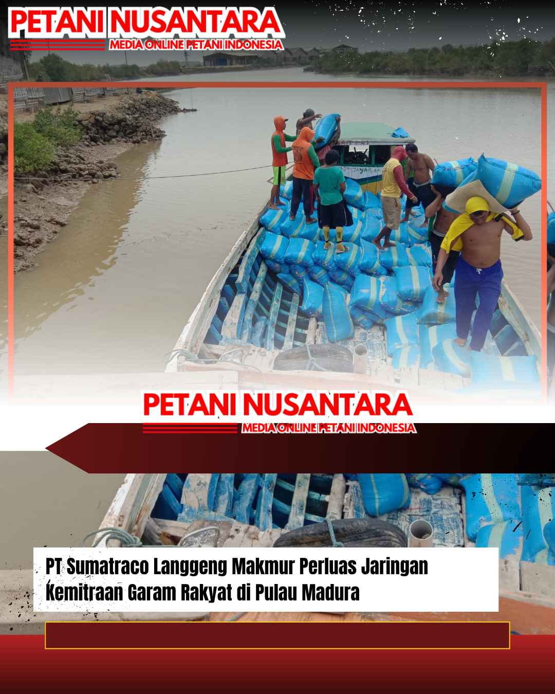 www.PetaniNusantara.com.ǁJawaTimur,26 Oktober 2025-Perusahaan produsen garam industri dan konsumsi, PT Sumatraco Langgeng Makmur, terus memperkuat kemitraan dengan para petani garam di Pulau Madura. Melalui program kemitraan berkelanjutan, perusahaan ini kini setiap hari menyerap hingga 100 ton garam rakyat dari sejumlah sentra produksi di Kabupaten Sampang dan Pamekasan.