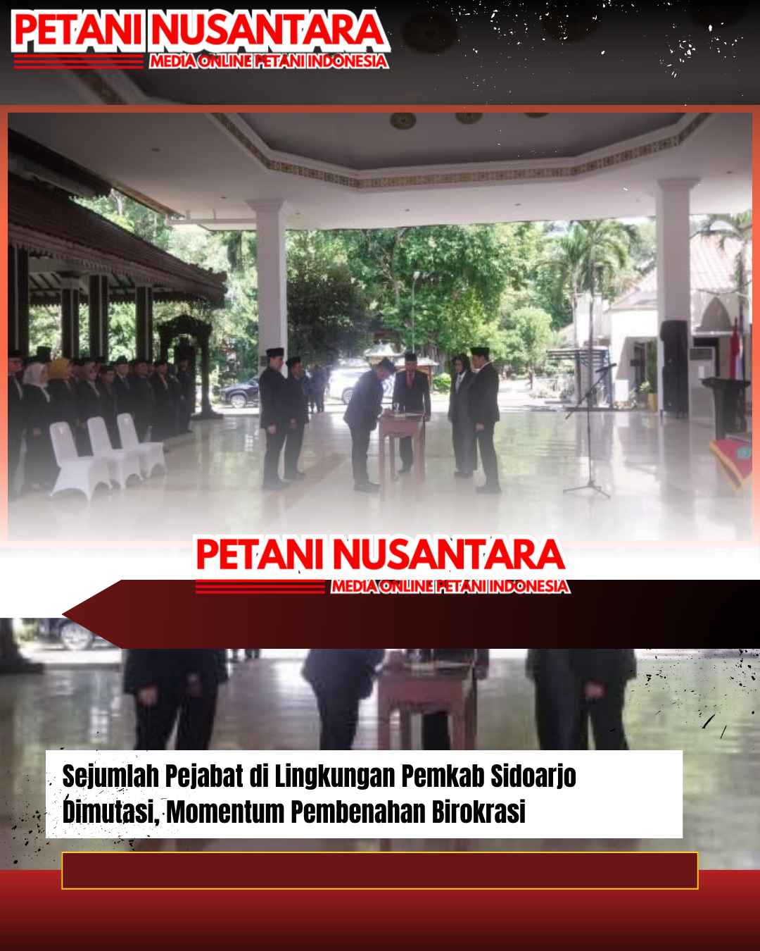 www.PetaniNusantara.com.ǁJawaTimur,17 September 2025-Mutasi pejabat bergulir di lingkungan Pemkab Sidoarjo. Beberapa kepala dinas dan pejabat lain dimutasi oleh Bupati Sidoarjo Subandi, Rabu (17/9/2025).